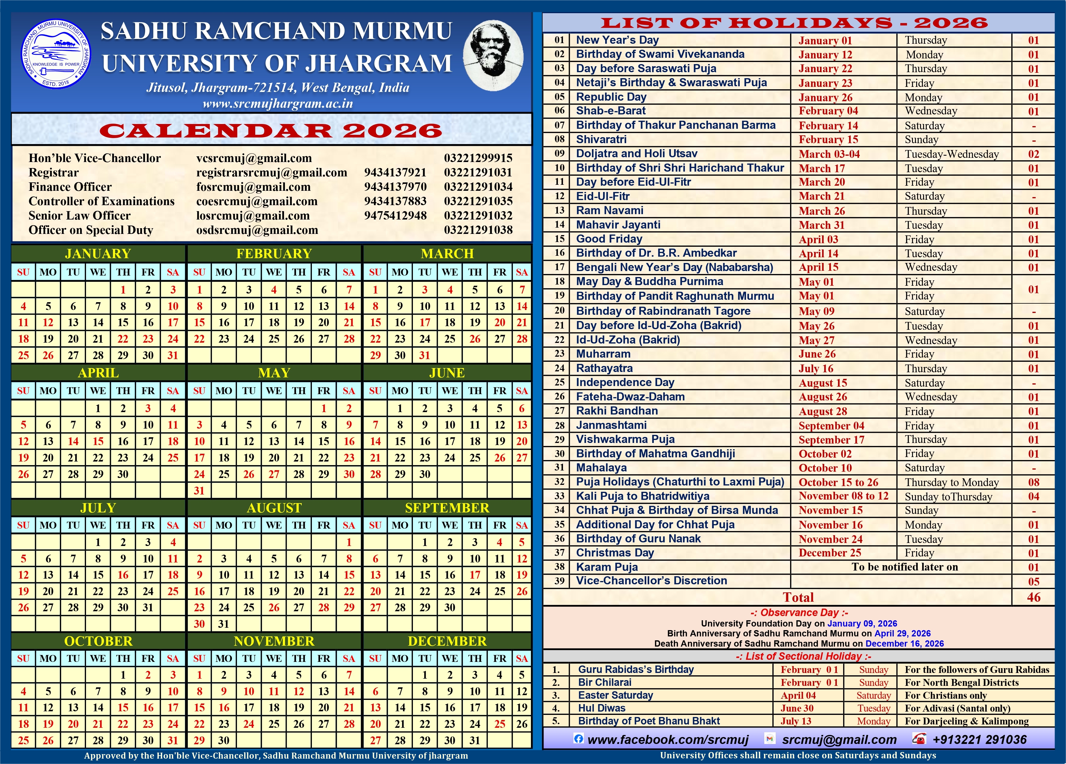 | 01-01-2026 | SRMUJ CALENDAR 2026 | View |